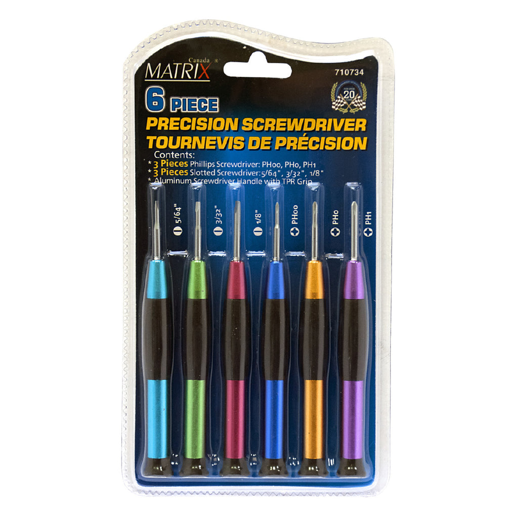 Manche de tournevis en aluminium avec poignée TPR. L'ensemble comprend : (3) Phillips : PH#00 ; PH#0 ; PH#1 | (3) fentes : 5/64in ; 3/32in ; 1/8in. Ce jeu de tournevis de précision vous permet d'accéder facilement aux espaces restreints.