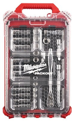 Notre jeu de clé à rochet et de douilles comporte des douilles FOUR FLATMC qui empêchent le roulement et sont compatibles avec les clés pour une productivité maximale. Clé à rochet à 90 dents offrant un arc de débattement de 4° et une conception à profil mince vous permettant de travailler dans les endroits exigus. Nous avons estampillé les tailles dans chaque douille pour une visibilité facile à lire. Vous pouvez garder votre jeu de clé à rochet et de douilles à prise de 3/8 po de 32 morceaux bien rangé dans l’organisateur compact à profil bas PACKOUTMC équipé d’un couvercle transparent compris afin de pouvoir facilement reconnaître les pièces d’un coup d’œil. Cet organisateur PACKOUTMC est classé IP65 et construit à partir de matériaux résistants aux chocs pour une durabilité sur et hors du chantier, avec une charnière renforcée et des loquets à service intensif. L’organisateur compact à profil bas fait partie du système de rangement modulaire MILWAUKEE® PACKOUTMC, qui vous permet de construire des systèmes de rangement personnalisés pour transporter et organiser facilement vos outils et accessoires. Ce kit comprend un jeu de clé à rochet et de douilles métrique à prise de 3/8 po de 32 morceaux et un organisateur compact à profil bas PACKOUTMC.