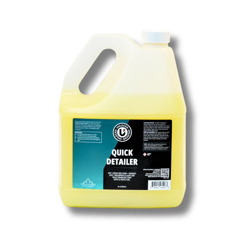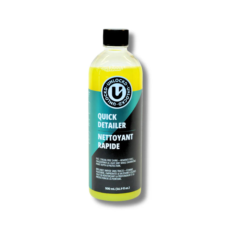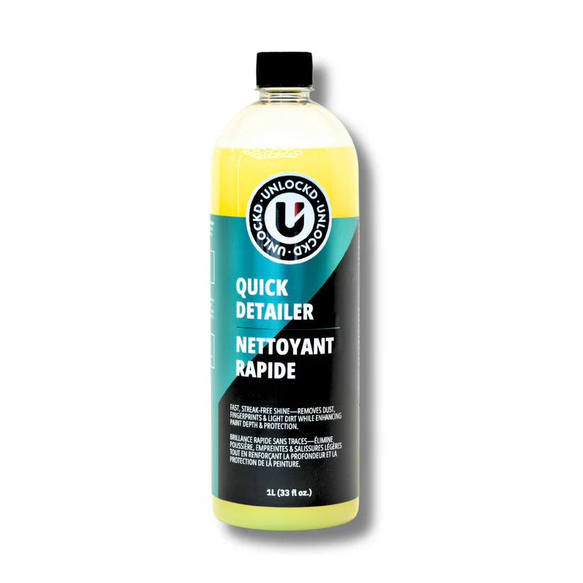 Le Détaillant rapide Unlockd est la solution idéale pour raviver l’éclat et la brillance entre les lavages. Cette formule pratique en spray élimine sans effort la poussière, les empreintes et la saleté légère, laissant votre véhicule propre et éclatant en quelques minutes. Sécuritaire pour toutes les surfaces extérieures, y compris la peinture, le verre et le chrome, il est parfait pour un fini impeccable en tout temps.