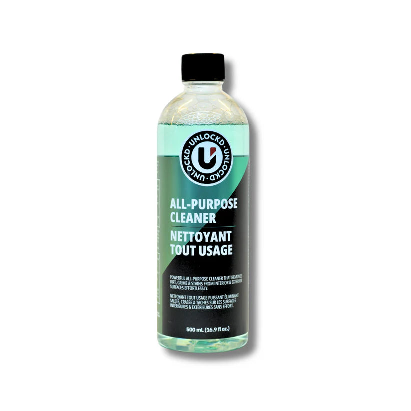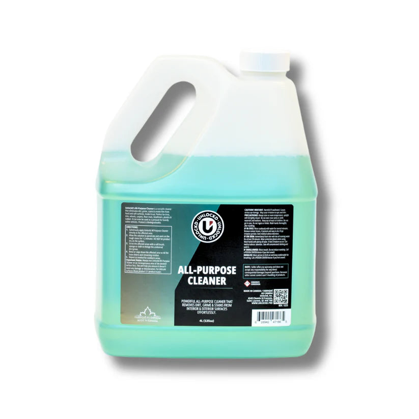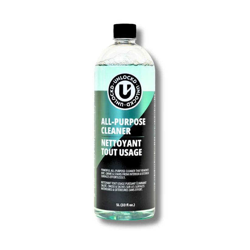 Le Nettoyant tout usage Unlockd est une solution ultra-performante qui élimine la saleté, la crasse, les taches et les résidus de fumée sur les surfaces dures et souples, à l’intérieur comme à l’extérieur. Parfait pour les pneus, garnitures, jantes, tapis, moquettes, plafonds de voiture, plastiques et caoutchouc, il peut également être utilisé comme pré-trempage pour les véhicules très encrassés. Biodégradable et respectueux de l’environnement, il offre un nettoyage en profondeur tout en restant sécuritaire pour une utilisation régulière.