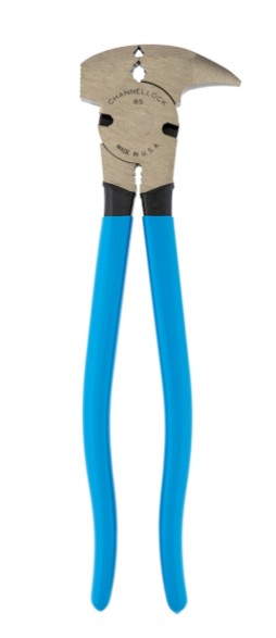 A utiliser sur des poteaux en métal ou en bois. La tête du marteau se trouve sur une mâchoire ; le point de départ et de traction ondulé se trouve sur l'autre mâchoire. Construction robuste à joint de blocage avec des mâchoires à face ovale. Idéal pour tirer les agrafes, soulever les pattes et étirer le fil de fer. Un coupe-fil de chaque côté permet de couper le fil barbelé à double brin. Tête hautement polie, poignée moletée, poignées en plastique bleu.