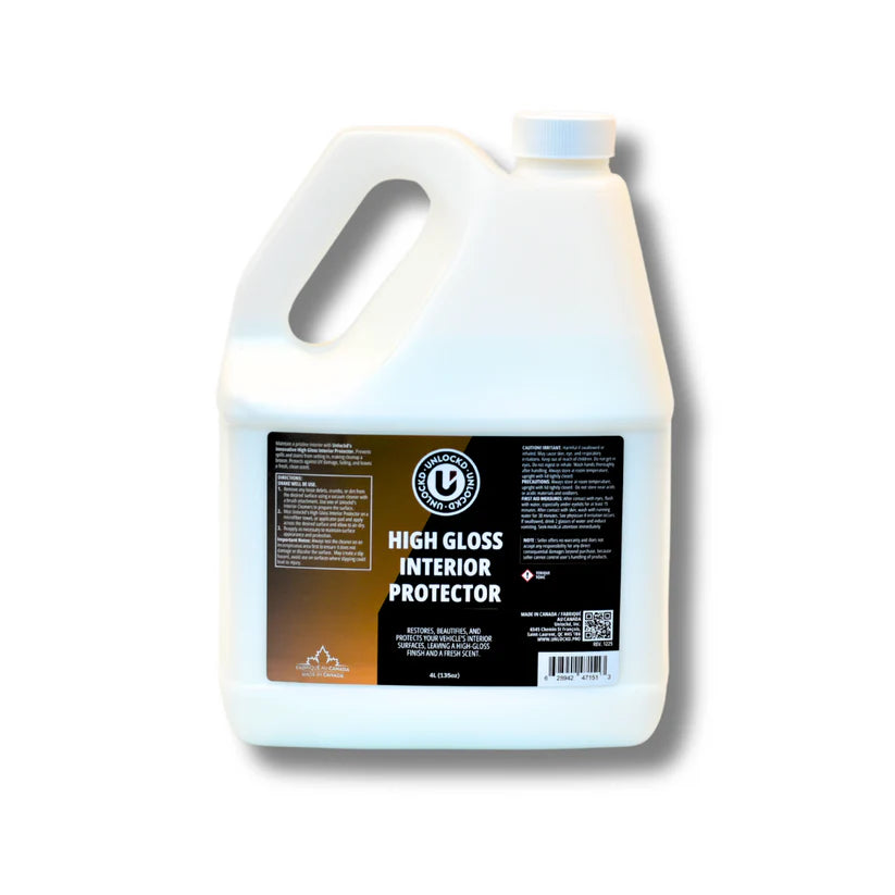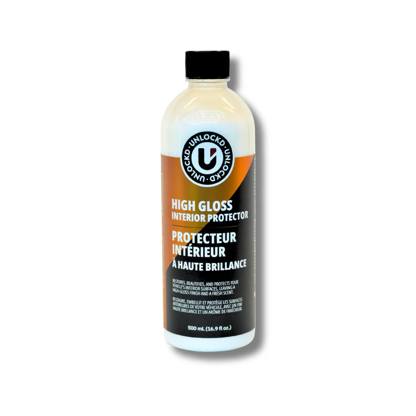 Application : Pulvérisez le Protecteur d’intérieur fini lustré Unlockd sur un chiffon en microfibre ou un tampon applicateur, puis appliquez uniformément sur la surface souhaitée.